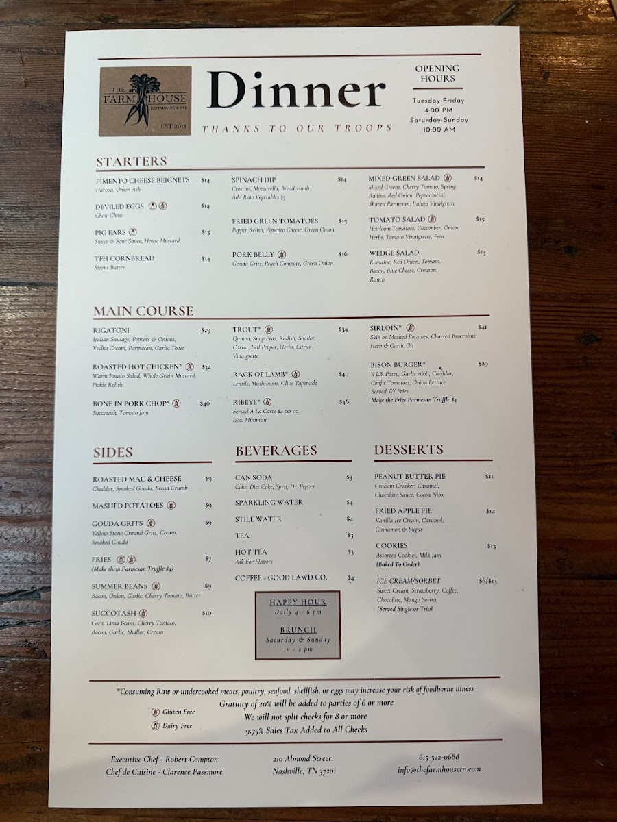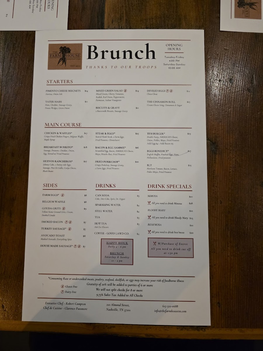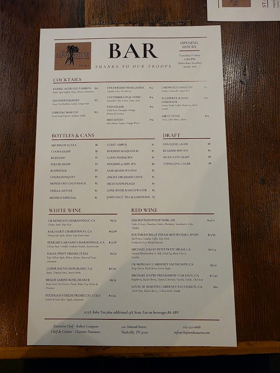 Welcome to The Farm House, a gem in the heart of Nashville, where Southern cuisine meets culinary excellence. Nestled at 210 Almond St, this restaurant offers a menu that is both comforting and innovative. Each dish is prepared with top-quality ingredients, ensuring depth in every flavor.